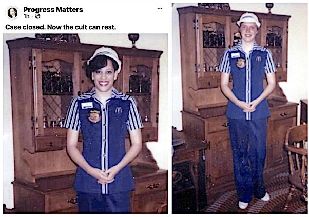 A group called "Progress Matters" in their enthusiasm to debunk the Right forgot to verify a photo of Kamala in a McDonald's uniform.